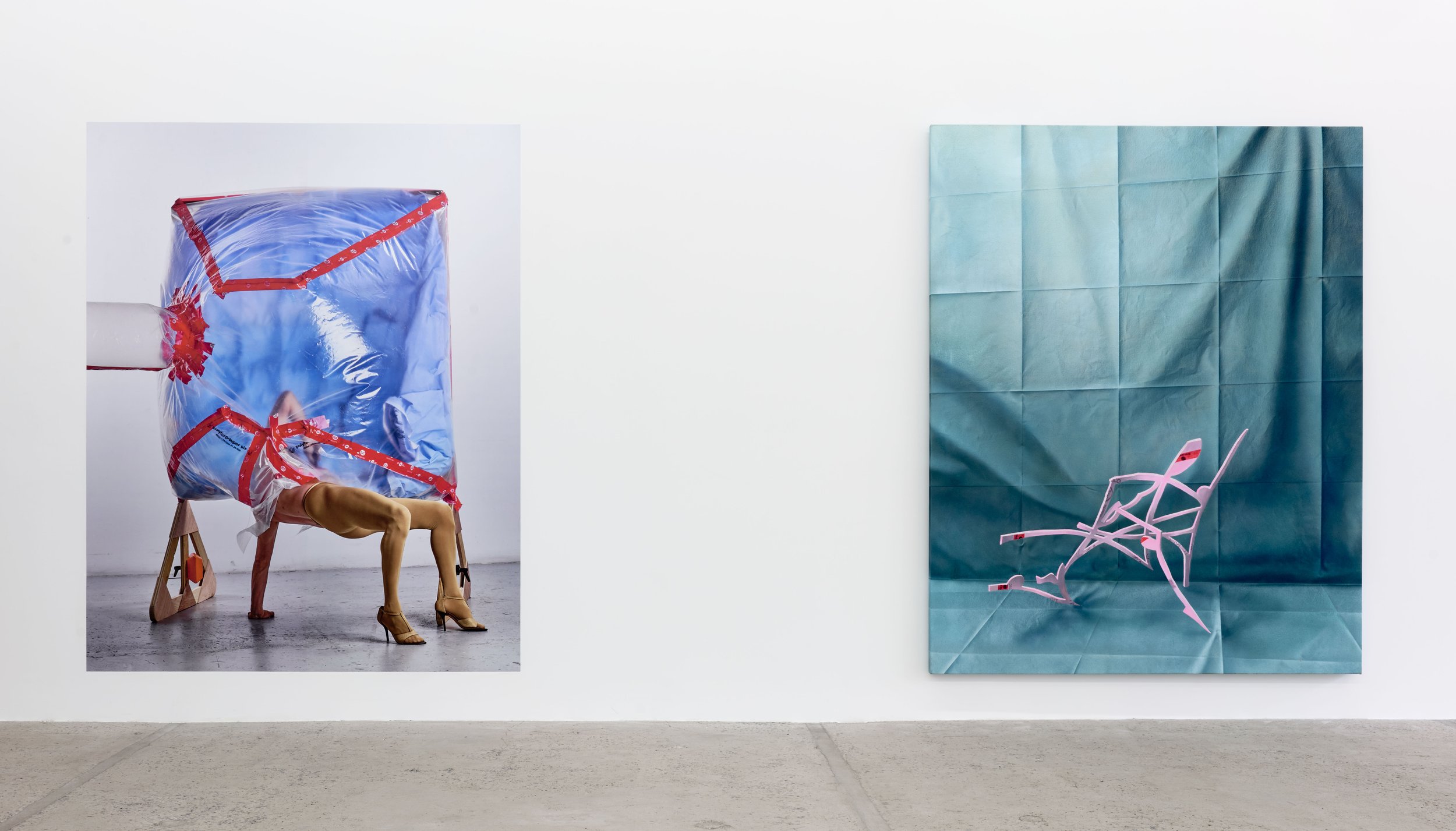 Anthony Burnham, Simulacrum (2024) et Rehearsing Warm Up (2019) Karen Tam, Famille verte – Surf’n’Turf et Xiafen “Sherry” Chan: Whole-of-society threat? (détail), 2018, papier mâché, papier cartonné, gouache, encre de Chine. (photo Galerie Hugues Charbonneau) — Récipiendaire 2025 — Anthony Burnham — Récipiendaire 2025 — Anthony Burnham — Récipiendaire 2025 — Anthony Burnham