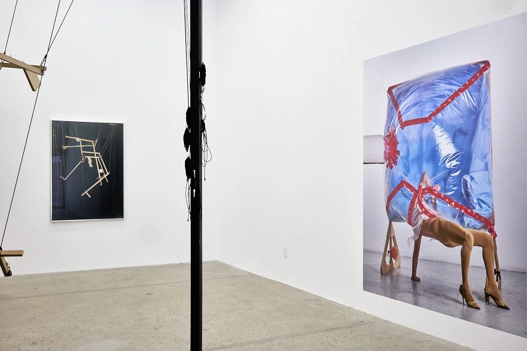 (droite) Vue de l’exposition Exposition pour marionnettes en 3 actes, galerie Eli Kerr, 25 avril-8 juin 2024